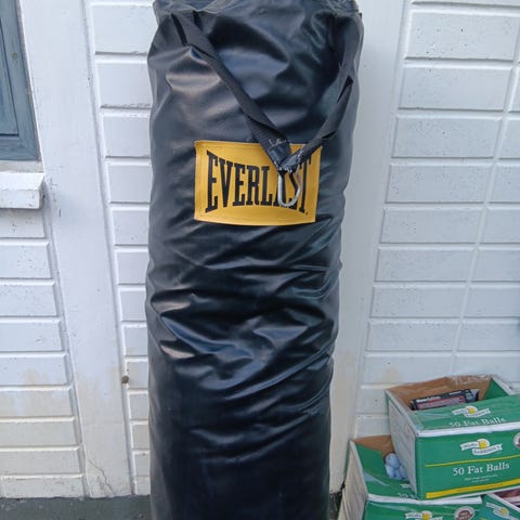 Nippon Sport sandsæk i rød og sort. Sandsækken har snørelukning og ophæng i reb med forstærkede læderstropper i toppen. Velegnet til boksetræning, kickboksning og anden kampsportstræning, hvor der er behov for slag- og sparketræning mod en hængende sandsæk.