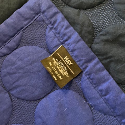 Hay quiltet sengetæppe i lilla. Mål: 235 x 245 cm. Forside og bagside er i 100 % bomuld, fyld i 100 % polyester. Sengetæppet har cirkelquiltet mønster og kantbånd hele vejen rundt
