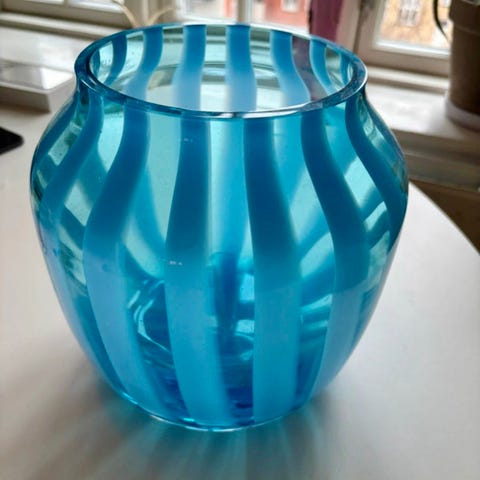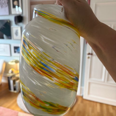 Hay vase klar glas, h:15cm, lyserød tone i glas