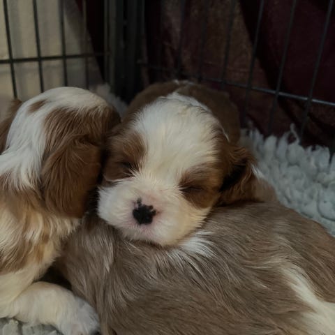 Skønne smukke Cavalier king Charles blandinger. Salgs klar torsdag 02-04. Deres mor er 50% Cavalier king charles og 50 % Beagle. Hun er hjerne scannet og hjerte scannet samt patella lux undersøgt uden bemærkninger. Deres far er ægte Cavalier king Charles med stamtavle. Han er PRA undersøgt - hjerne scannet- hjerte scannet samt røngen fotograferet for HD -AD og OCD . Han er kryptokid erklæret. Det hele 100 % ok . Hvalpene er vaccineret 1.st gang samt sundheds undersøgt og chipmærkede og registreret I dansk hunde register samt der er lavet Stamtræ på hvalpene. Deres er kærlige glade og nysgerrig. Det er fire piger og de to af dem får pels som Cavalier og de andre to en kortere pels . Vi har godkendt Kennel ved fødevarer styrelsen Samt faste dyrlæge kontroller med ene glade smileyer og 40 års erfaring ved interesse kan jeg kontaktes på tlf nr 61759610 . Med sig ved afrejse følger stor flot hvalpe pakke samt 2 års garanti.