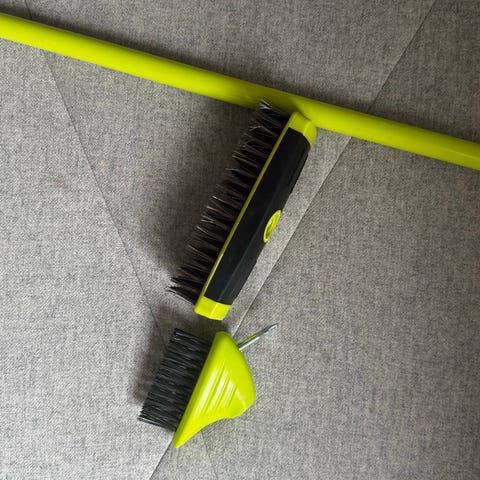 BILTEMAs model i blå plast med teleskopskaft og hjul. Enheden har håndtag og elektrisk betjening via knap på skaftet. Velegnet til at rense mellem fliser på mindre arealer som indkørsler og gangstier.