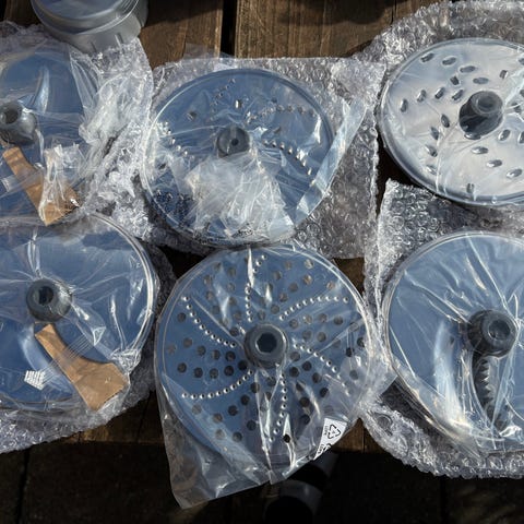 Kenwood grøntsagssnitter til køkkenmaskine med flere udskiftelige skiver. Enheden monteres på Kenwood køkkenmaskine via bajonetfatning. Medfølgende skiver er beregnet til snitning og rivning af fx grøntsager, ost eller frugt. Sættet består af selve snittehuset, påfyldningstragt, trykstempel og flere tromleskiver/indsatse. Velegnet som tilbehør til madforberedning, hvor der er behov for ensartede skiver eller strimler.