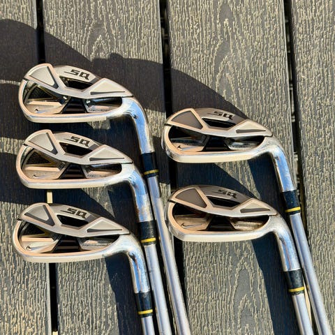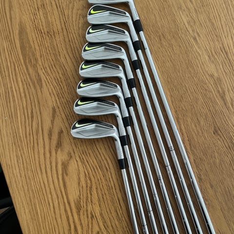 Klassiske Nike VR Pro Combo i rigtig flot stand. Combo-setup med cavity backs i 5-7 og blades i 8-PW – det bedste fra begge verdener.