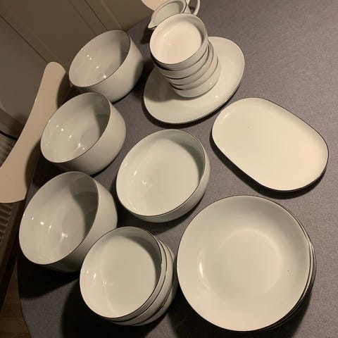 Alt er brugt, men pæn og velholdt. Studio Concept er "Ultra Fine Porcelain", mens COVO-skålene er i en lækker keramik med glaseret inderside.