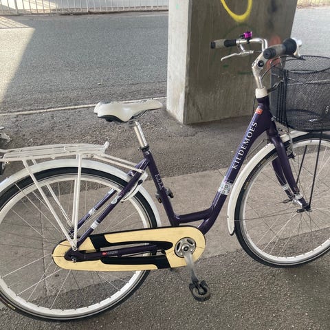 Den har en cykel kurv, støtteben.