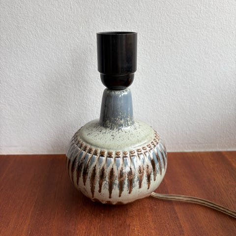 Klassisk dansk design med keramisk fod og dekorative detaljer – perfekt til retro/60-70’er indretning.