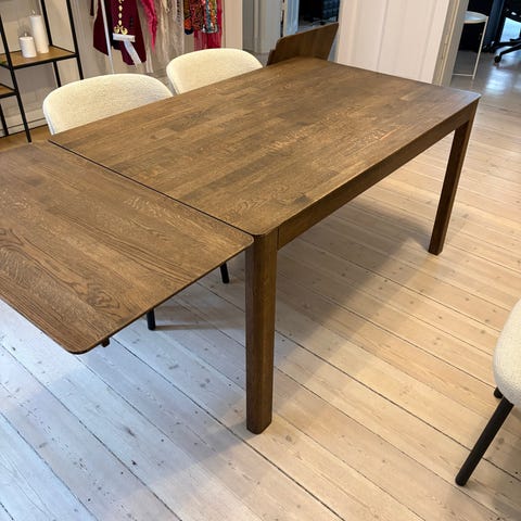 Original farve er mørk træ (sidste bordplade er ikke malet).