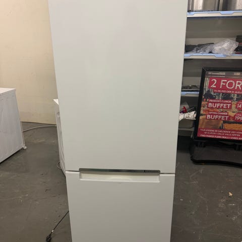 Samsung køle-fryseskab i hvid. Kombineret køl og frys med kølesektion øverst og fryser nederst. Køleskabet har flere glashylder, grøntsagsskuffe og dørhylder til flasker og kartoner. Fryserdelen har tre gennemskuelige skuffer til opbevaring af frostvarer. Velegnet til almindeligt køkkenbrug med god opdeling mellem køl og frys.