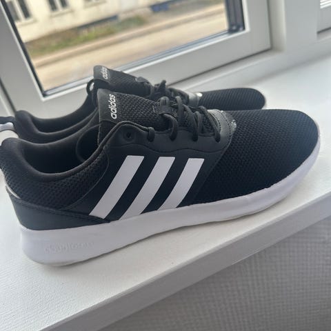 Adidas sneakers i størrelse 37. Modellen er i sort med hvide striber og hvid sål. Overdel i tekstil/syntetisk materiale med snørelukning. Velegnet som hverdagssko eller fritidssko.