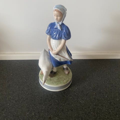Royal Copenhagen gåsepige porcelænsfigur blå og hvid