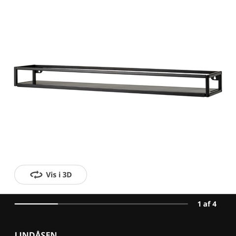 IKEA LINDÅSEN. Jeg har sådan en væghylde her i sort metal til overs som jeg gerne vil af med. Kan hentes i Herning. :)