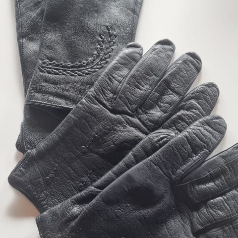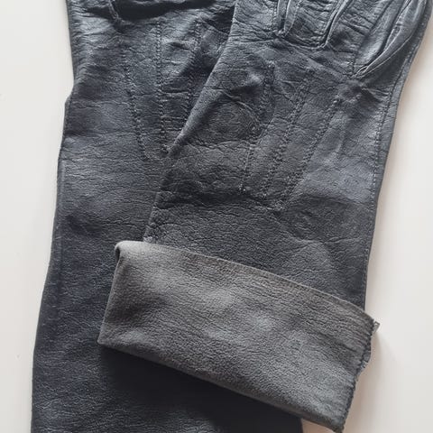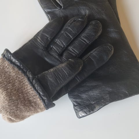 Handskerne har et tyndt foer - med lidt patina.HUL I FORET.