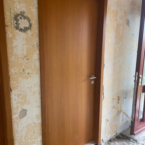 Indvendig dør i træ med træstruktur og monteret dørhåndtag. Velegnet som indvendig dør i bolig, fx mellem rum eller til værelser. Døren fremstår med naturlig træoverflade og klassisk udseende. Kan bruges ved udskiftning eller renovering af eksisterende døre i huset. 8 stk, samlet pris, ikke karme til alle