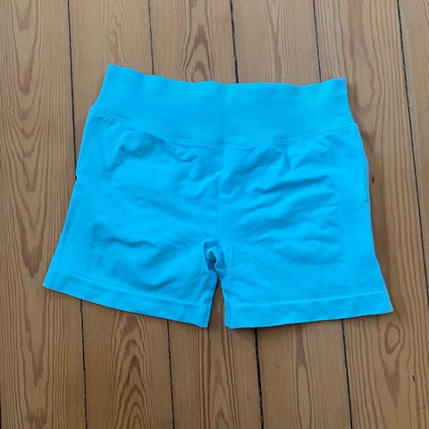 NVGTN træningsshorts til kvinder i størrelse M. Modellen er korte tights med høj talje og elastisk linning. Farven er sort. Materialet er 87 % nylon og 13 % spandex, hvilket giver stræk og tætsiddende pasform. Velegnet til fitness og anden træning. Vaskes efter anvisningerne i tøjet. Originalpris 235kr, pris NU 135kr