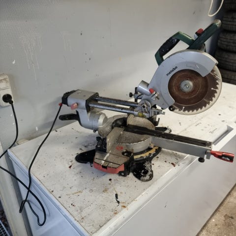 Power Craft kap-/geringssav med rund klinge og støvpose. El-drevet sav egnet til præcisionsskæring af træ og lignende materialer. Monteret på drejefod med mulighed for geringssnit. Velegnet til hobby- og værkstedsbrug, hvor der er behov for lige og skrå snit i emner som lister og brædder.