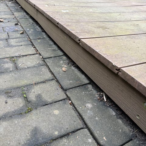Du skal selv skille terrassen ad, men det går ret hurtigt, da brædderne ikke er skruet fast, men derimod klipset fast (se billede af brættet i profil).