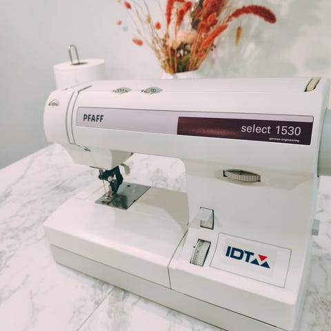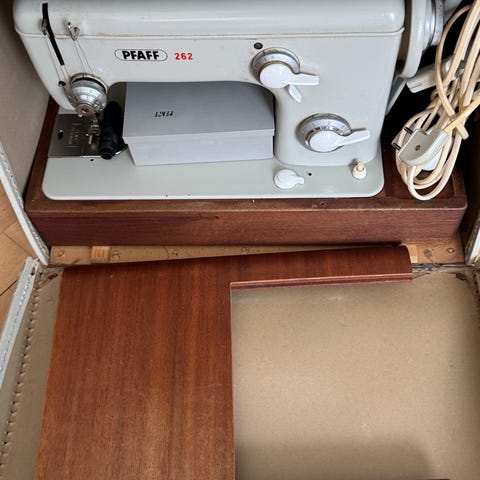 Pfaff Tipmatic 6120 symaskine i hvid. Elektrisk symaskine med indbyggede funktionsknapper på fronten og arbejdslys ved nålen. Egnet til almindelige syopgaver i hjemmet, herunder reparationer og simple syprojekter. Maskinen er fremstillet i Tyskland og har et kompakt kabinet, der kan placeres på bord. Velegnet til brug med forskellige stoftyper afhængigt af valg af nål og tråd.