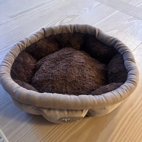 Roommate hundeseng i rund model. Sengen er udført i blødt fløjlstekstil i en lys beige farve med ribbet struktur. Den har høje, polstrede kanter hele vejen rundt og en løs, polstret bundpude for ekstra komfort. Velegnet som liggeplads til mindre hunde eller andre små kæledyr i hjemmet.