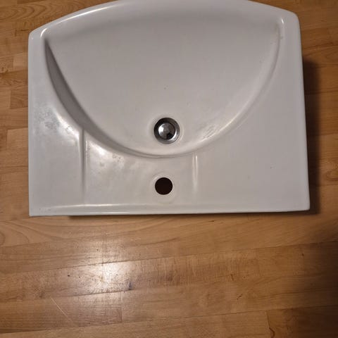 Håndvaske, 2 stk hvide håndvaske bred 56 cm dyb 42 cm med bæringer og vandhaner som vist på billederne 1 stk IFØ bred 69 cm dyb 48 cm med vandhane, uden bæringer, da den skrues fast, der er fliser bag på der er sat på med silikone, så de kan tages af
