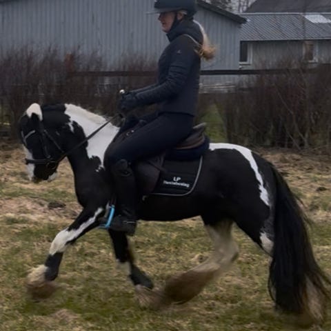 Denne smukke irske hoppe er en sød omgængelig og sensibel pony på 14år og 139cm med god fylde. Står stille ved opstigning og er lydhør overfor stemme og trives med lette signaler. Udover let baneridning arbejder vi med miljøtræning og trafiktræning, hvilket vil være godt at fortsætte med. Nem at læsse og står roligt i trailer, vant til at køre alene. Står rolig ved smed og nyder at blive striglet og få opmærksomhed. Nuværende rytter er 9år og har haft hende med på ridelejr, samt startet LD og bomklasser på hende. Tidligere rytter har sprunget LD højde på hende. Nøjsom i foder. Oplagt emne at trække føl på, forventer at hun vil være en god følmor ud fra hendes milde sind.