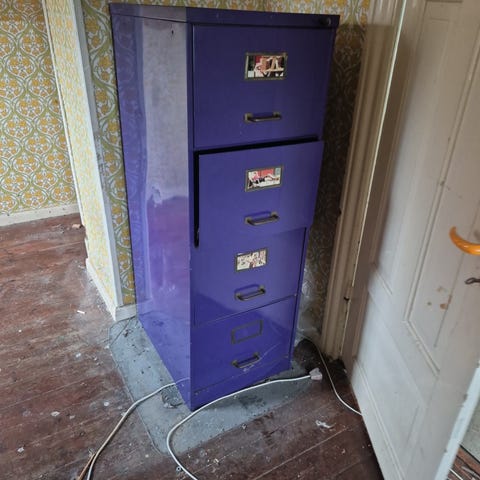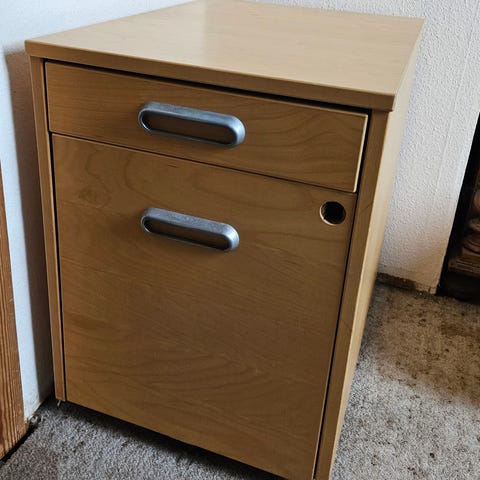 Gratis kontormøbler, bl.a. skrivebord og flere forskellige arkivskabe og reoler