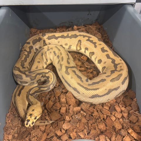 1200g, lige haft sit første kuld på 3 store æg 0 slugs, hun er tilbage på rotter.