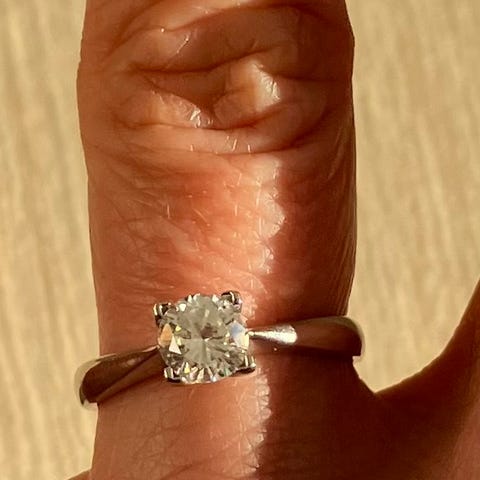 Smuk ring med flotte stene. Jeg ved ikke hvad det er for nogle stene men tror ikke det er diamanter, sandsynligvis zircona.