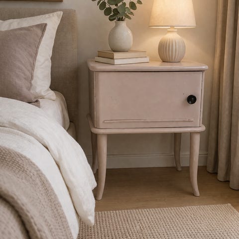 Flot og vintage sengebord med skuffe.