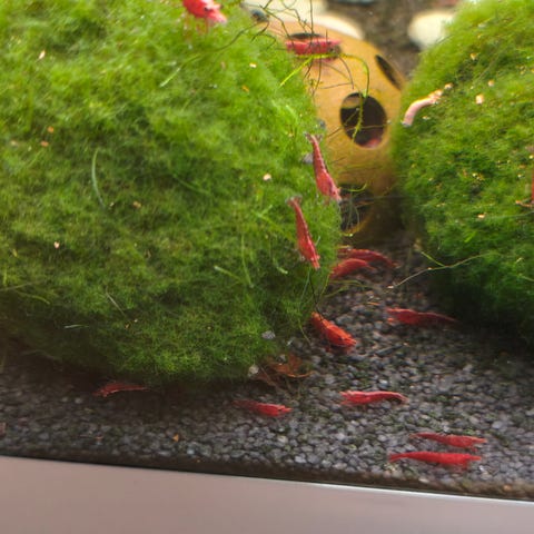 Sælger 20 stk røde kirsebærrejer – perfekte til det nye akvarium.
