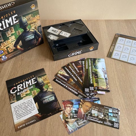Fantastisk detektivspil, hvor det gælder om i fællesskab at løse mordgåder - bl.a. gennem brugen af augmented reality, hvor man ser crime scenes gennem sin telefon, taler med vidner og finder spor. De anerkendte spilanmeldere hos Dice Tower har givet spillet udmærkningen "The Seal of Excellence". Sproget er dansk/svensk.