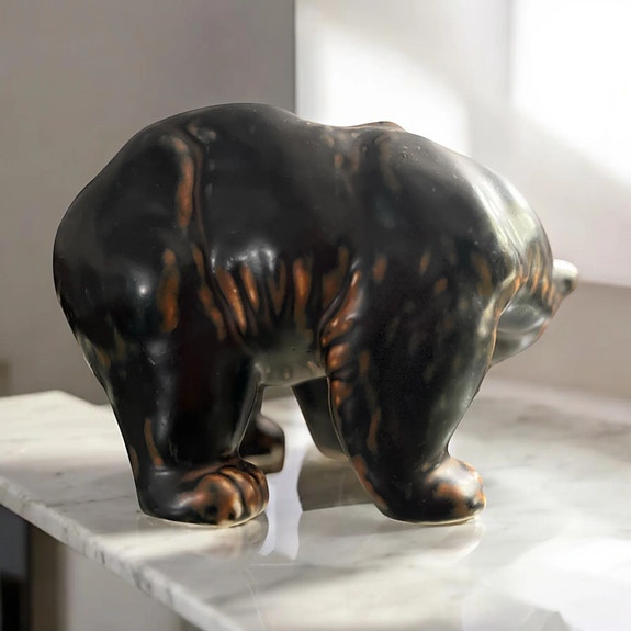 Ravfarvet støbt glas kombineret med blanke messingbeslag