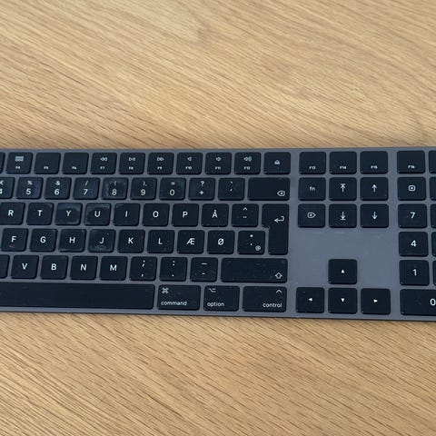 Originalt Apple tastatur i fuld størrelse med numerisk keypad. Perfekt til både Mac og PC, hvis du vil have et solidt og minimalistisk tastatur med god skriveoplevelse.