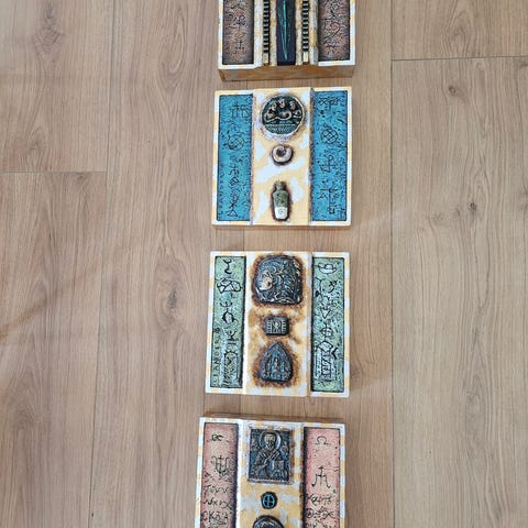 Flotte ikoner den ene med temaet glæde, den anden med frihed og den tredje er barmhjertighed. Sælges for 150 kr stykket eller samlet for 400kr