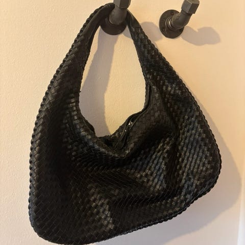 Pitaya skuldertaske til kvinde i læder. Tasken er udført i flettet læder med kort skulderrem. Den har et hovedrum med lynlåslukning samt indvendig lynlåslomme. Farven fremstår som sort. Velegnet til daglig brug med plads til almindelige hverdagsting som pung, telefon og nøgler.