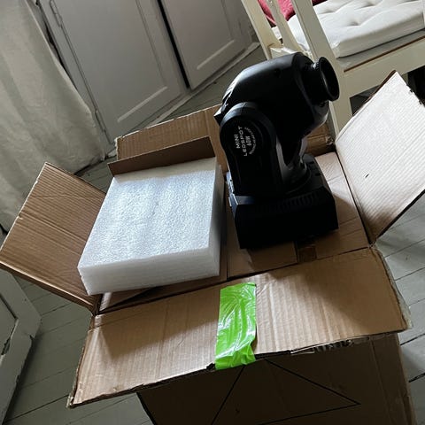 Sælger denne Lumeri mini moving head wash - den er på 60-70 watt mener jeg, kontrollerbar via DMX og lyswr godt uden at være prangende. Jeg har 4 af dem, stadig i original forpakning, og fuldstændigt ubrugte, idet de ikke var kraftige nok til mit brug.