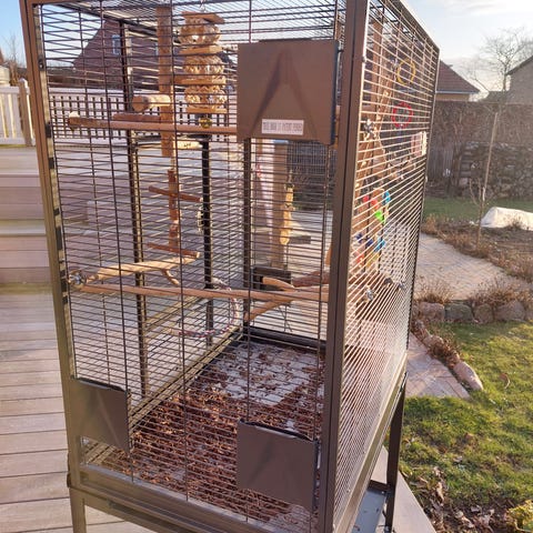 Buret er på hjul og er dermed let at flytte ved regøring, eller hvis buret skal udendørs i Sommervejret