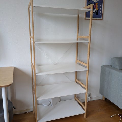 Shelving unit BROBY 5s slim bamboo/white