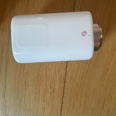 Hombli smart radiator-termostater sæt i hvid. Sættet indeholder flere elektroniske radiator-termostater samt en central enhed til styring. Termostaterne monteres på radiatorventiler og enhederne kommunikerer trådløst med den medfølgende styreenhed.