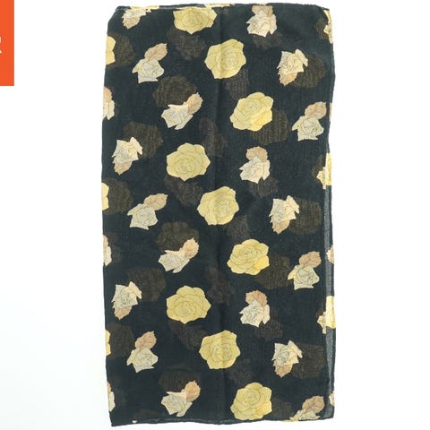 Silke tørklæde med målene 32 x 153 cm, som har et geometrisk mønster af ovaler og detaljer i lyse nuancer på en mørk baggrund. Stoffet ser ud til at være let og kan benyttes til forskellige dekorative formål eller som en del af beklædning.