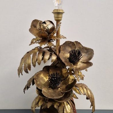 Maison Charles - Maison Jansen - Bordlampe - patineret metal, Træ, Tekstil - ...