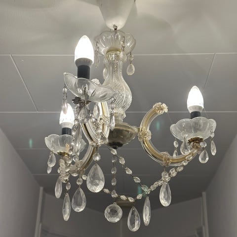 Set med to luksus Swarovski-kronlamper fra Louis LX med en 24 karat guldfarvet ramme, hver med Spectra krystalbolde og pegler, i fremragende stand og i funktion, fremstillet i Italien og dateret 2010–2020, bredde 30 cm, lampehøjde 32 cm, dybde 30 cm, diameter 26 cm, samlet højde op til 82 cm inklusive loftplade og kæde, beregnet til én E14-lampe pr. lampe. Klik på den blå "gå til varen" knap, for at købe eller byde på denne vare. Den samlede pris vil blive vist inden du afgiver dit bud.