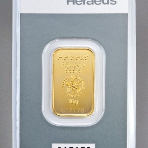 10 gram - Guld 999 - Heraeus, Germany - Forseglet