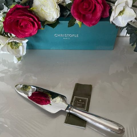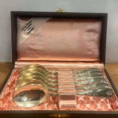Sælges i sin originale æske med det forgyldte mærke "Christofle" indeni. Æsken er generelt i god stand, selvom den har lette tidsældninger på satin indersiden af låget (synlige på billederne).