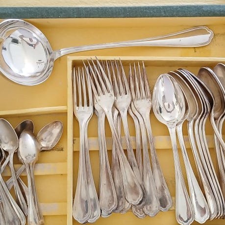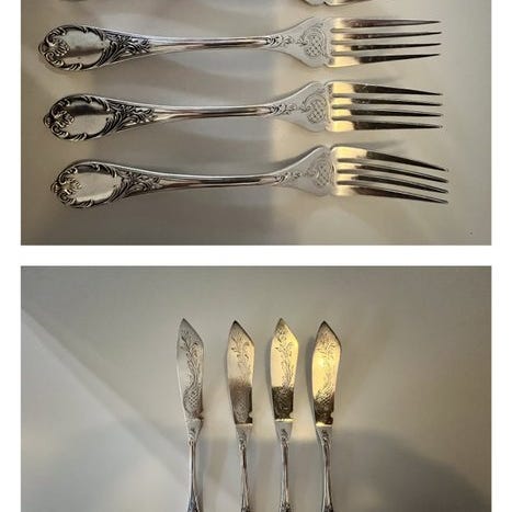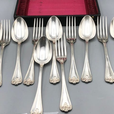 Superb bestik i Alfénide sølvbelagt metal, produktion Christofle.