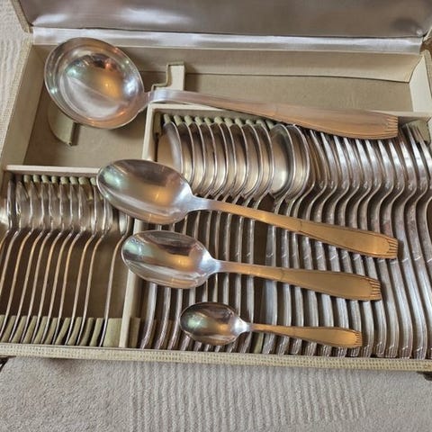 Alfénide/Christofle modellen Rubans, Art Déco bestik i 37 dele,