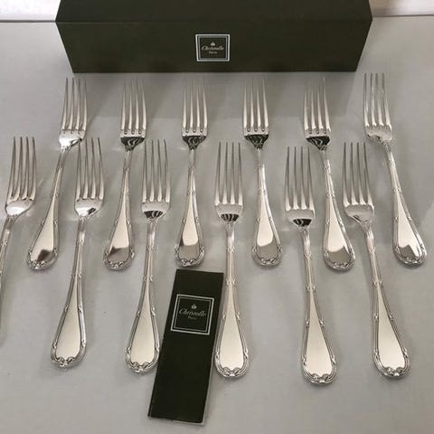 Christofle - Gaffel - Sæt med 6 kagegaffler, Vendôme / Arcantia-model - Sølvm...
