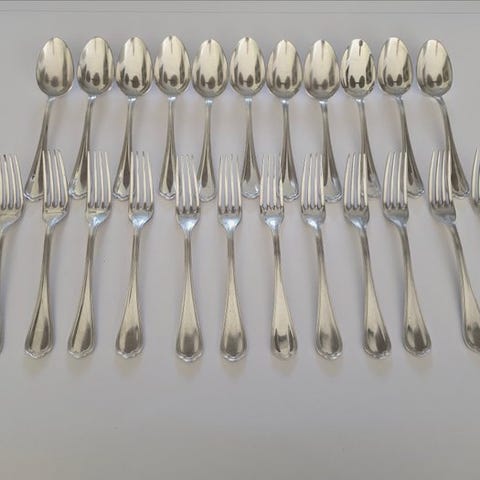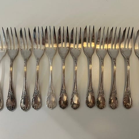 Ensemble af 6 kagegafler fra Christofle model Vendôme / Arcantia i sølvfarvet metal.