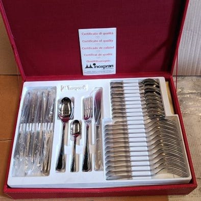 Pragtfuldt og prestigefyldt bestiksæt til 12 personer, produceret af Mepra S.p.A., en førende virksomhed i distriktet Lumezzane (Brescia).
