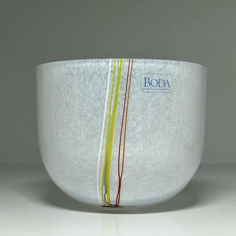 Cirrus-serien glas-skål fra Kosta Boda, designet af Bertil Vallien, Sverige, nr. 57852, cirka 1970–1980, 12,5 cm høj og 15,5 cm i diameter, i fremragende stand uden chips eller revner, signeret Bertil. Klik på den blå "gå til varen" knap, for at købe eller byde på denne vare. Den samlede pris vil blive vist inden du afgiver dit bud.