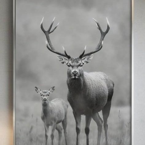 Wolf portrait printed on canvas. AI-powered graphics. Dimensions: 70 cm x 50 cm. The painting is framed in a beautiful silver frame. The painting looks beautiful in elegant, spacious interiors. Modern style. It depicts nature and wild animals. This is the first print, an edition on canvas signed by the author LuneDesign. Very good print quality. Artistic print. High-quality cotton canvas. In the photos the canvas print is not yet attached to the frame.
